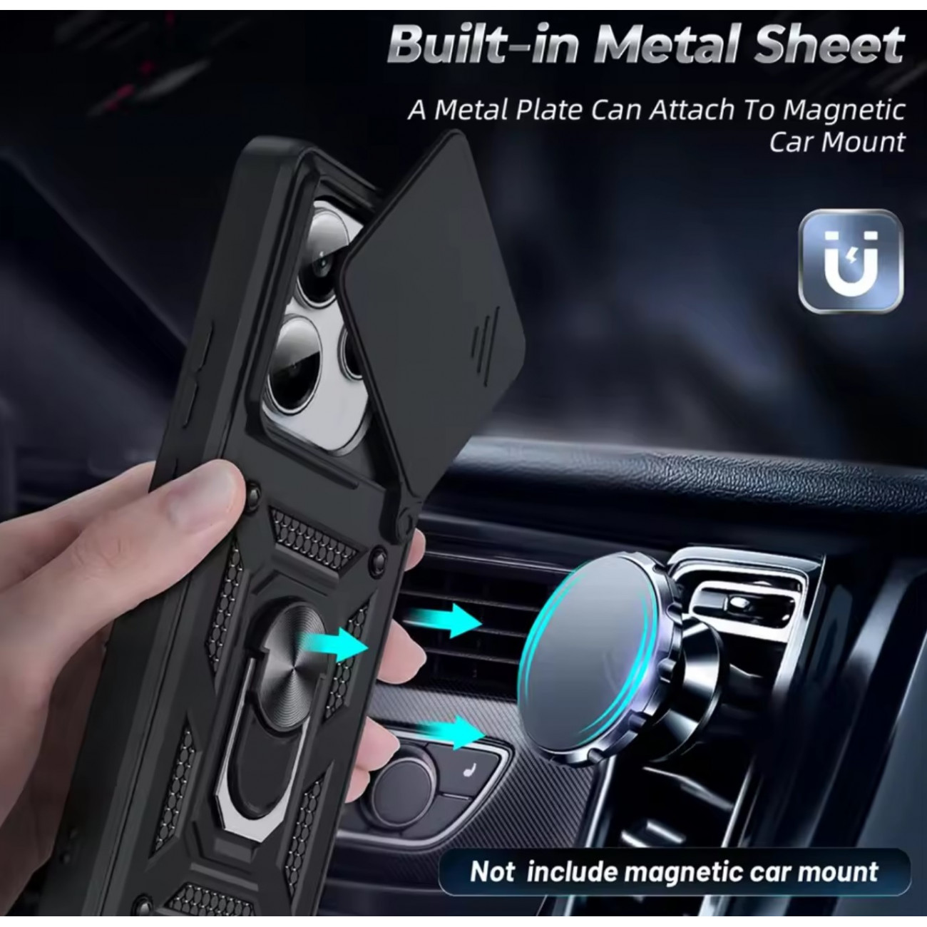 Чехол можно использовать с магнитным держателем в авто (внутри кольца есть алюминиевая пластина).