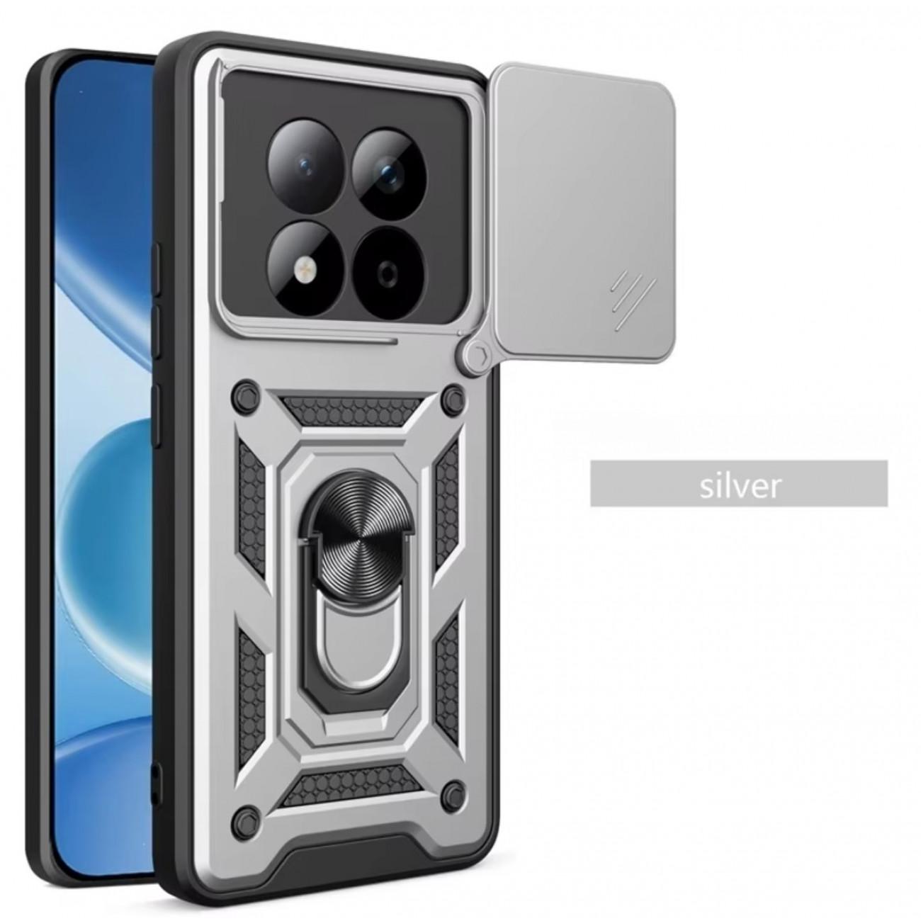 Ультратонкий противоударный чехол Camshield для Xiaomi Redmi Note 15 Pro 5G с кольцом-держателем – это как раз гибридный бампер, который поможет защитить ваш смартфон от любых механических повреждений. Основа этого чехла – это качественная силиконовая часть, кторая бережно защищает корпус смартфона. Сверху закреплена пластиковая часть с декоративными элементами и встроенным кольцом-держателем. Силикон и пластик надежно фиксируются между собой благодаря специальным пазам. Кроме того, этот бампер на несколько миллиметров выступает над дисплеем телефона, что обеспечивает дополнительную защиту.