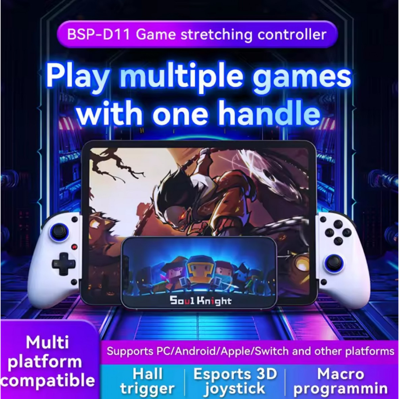 Геймпад BSP-D11 — это профессиональный игровой контроллер с растяжной конструкцией 143–260 мм, который подходит для большинства смартфонов и планшетов. Модель оснащена современными технологиями для максимального комфорта в играх.
