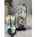 Основные характеристики Силиконовый чехол для iPhone 16 Pro Max с ремешком-подставкой и на шею Цветы на бежевом