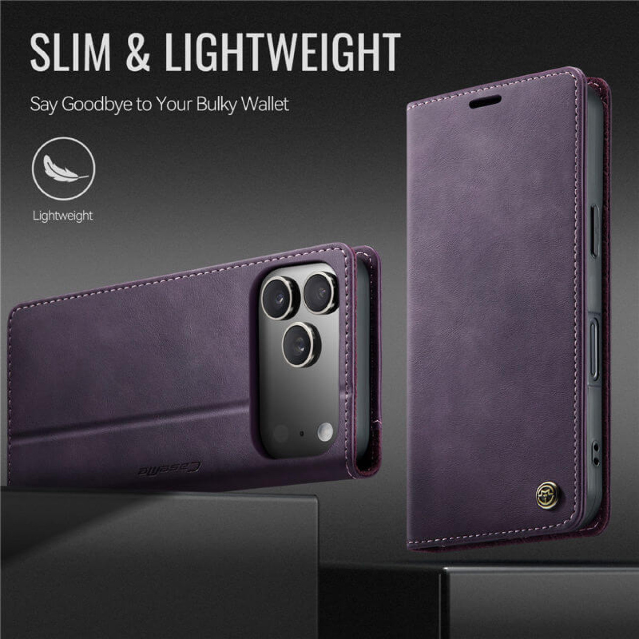 Ищете идеальный аксессуар для вашего iPhone 17 Pro Max? Чехол-книжка CaseMe RFID из искусственного нубука в фиолетовом цвете — это не просто защита, это настоящее произведение искусства, которое подчеркнет вашу индивидуальность и стиль.