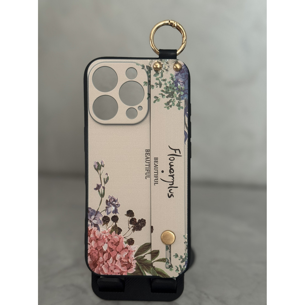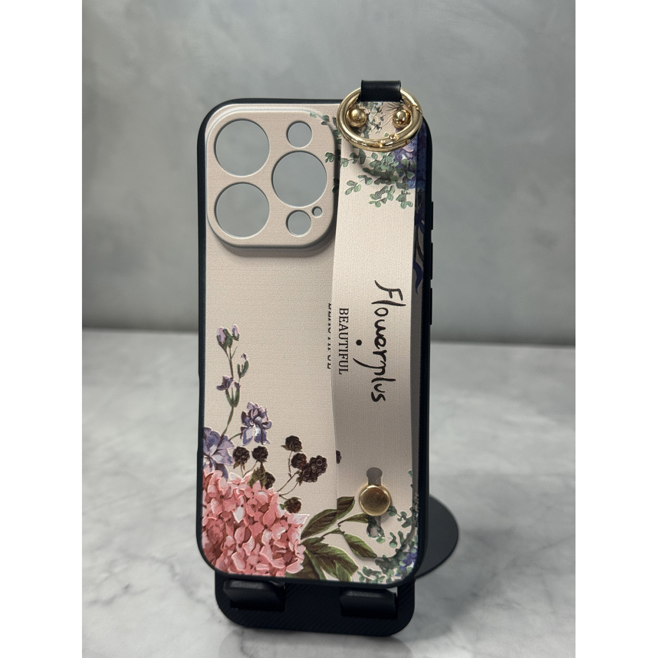 Силиконовый чехол для iPhone 16 Pro Max с ремешком-подставкой Flowerplus