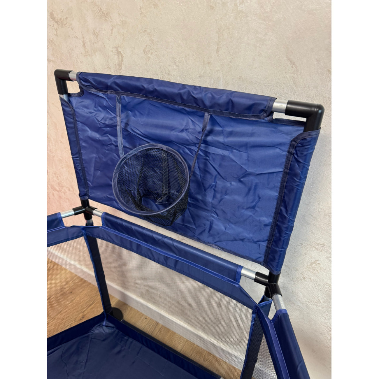 Каркас манежа изготовлен из прочных металлических труб, а стенки выполнены из прозрачной сетки, что позволяет родителям видеть ребёнка со всех сторон. Материалы гипоаллергенные, безопасные и легко очищаются. Высота бортиков подобрана так, чтобы ребёнок мог уверенно стоять, держась за край, но не смог перелезть через него.