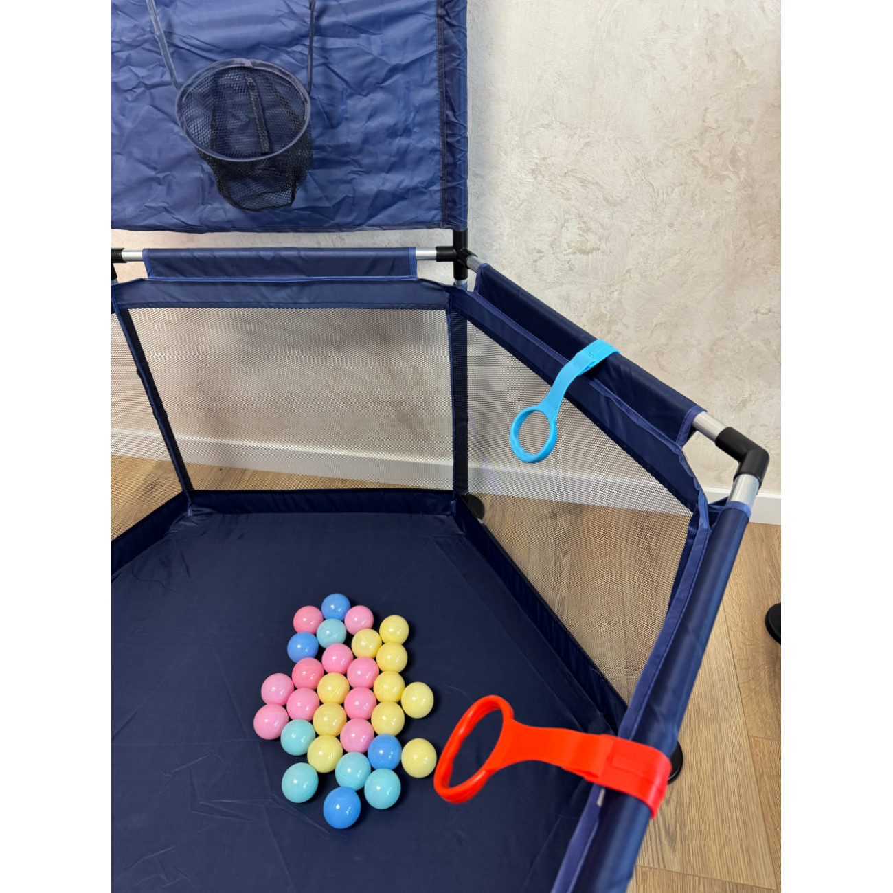 Дно манежа мягкое и приятное на ощупь, что делает его комфортным для ползания и активных игр. Благодаря насыщенным цветам и возможности бросать шарики в специальное кольцо, ребёнку будет интересно играть каждый день. Ткань устойчива к выгоранию, легко моется и не боится влаги.