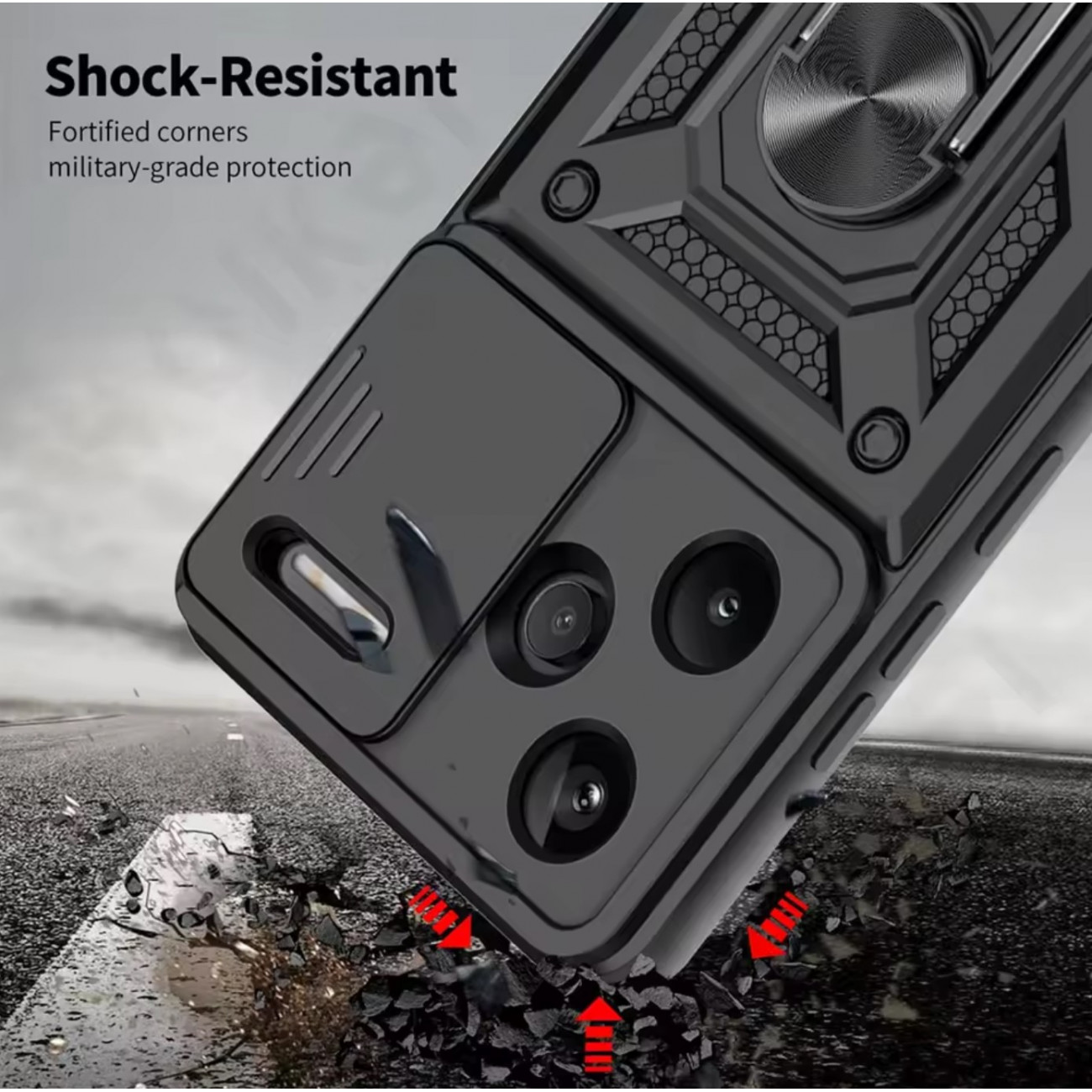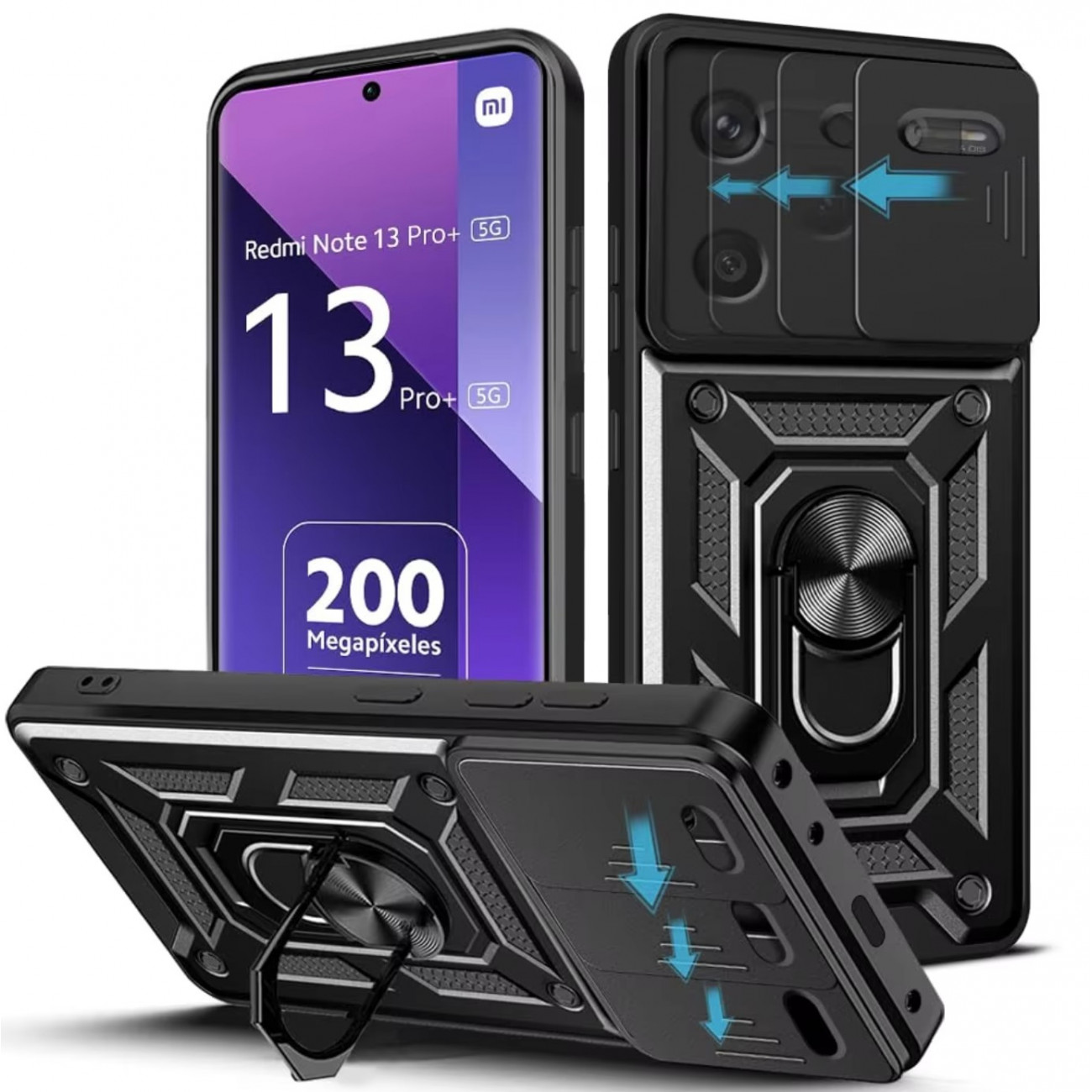 Ультратонкий протиударний чохол Camshield з кільцем для Xiaomi Redmi Note 13 Pro+ 5G з кільцем-тримачем – це гібридний бампер, який допоможе захистити ваш смартфон від будь-яких механічних пошкоджень. Основа цього чохла - це якісна силіконова частина, яка дбайливо захищає корпус смартфона. Зверху закріплена пластикова частина з декоративними елементами та вбудованим кільцем-тримачем. Силікон та пластик надійно фіксуються між собою завдяки спеціальним пазам. Крім того, цей бампер на кілька міліметрів виступає над телефоном, що забезпечує додатковий захист.