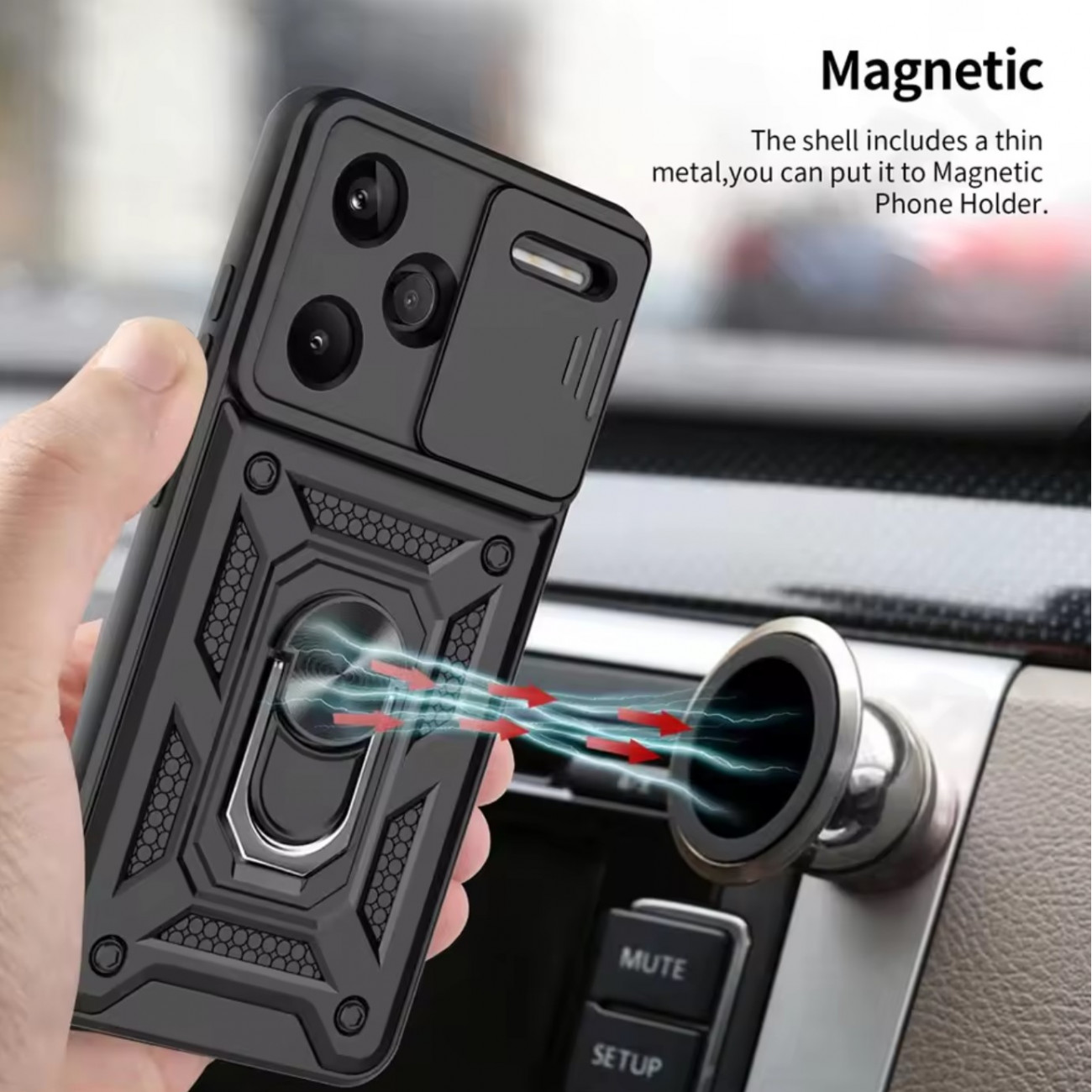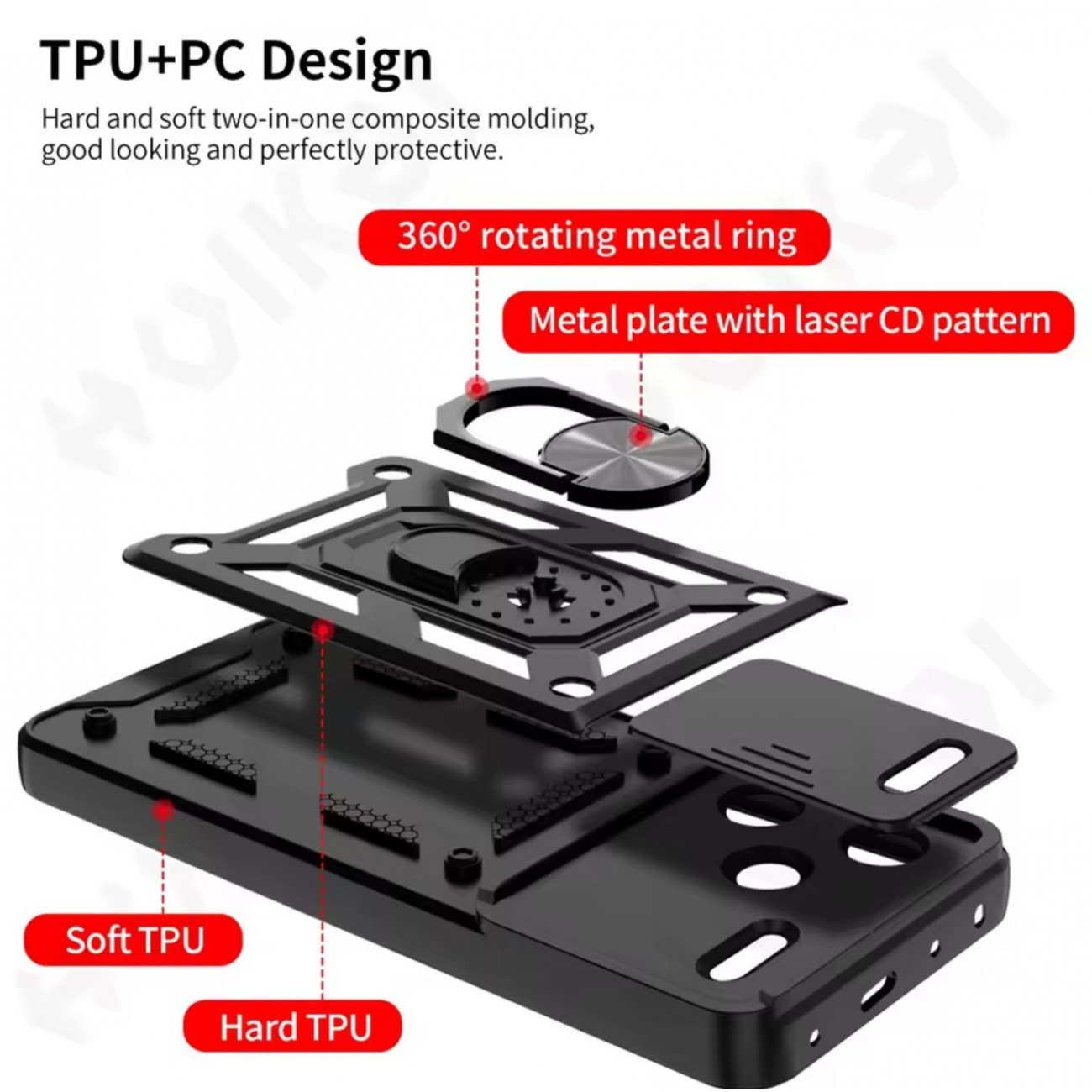 Чохол можна використовувати з магнітним утримувачем в авто (всередині кільця є алюмінієва пластина).