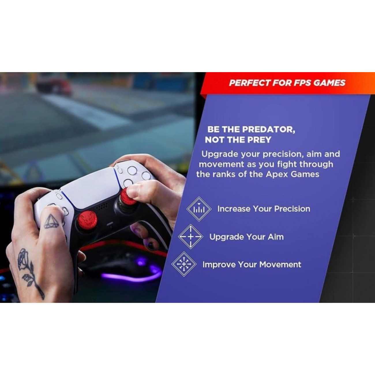 Серія Apex Legends: Predator Edition давно зарекомендувала себе серед професійних геймерів та ентузіастів. Фірмова текстурована поверхня накладок забезпечує надійне зчеплення з пальцем, запобігає ковзанню та дозволяє зберігати повний контроль над стиками навіть під час найнапруженіших ігрових моментів.