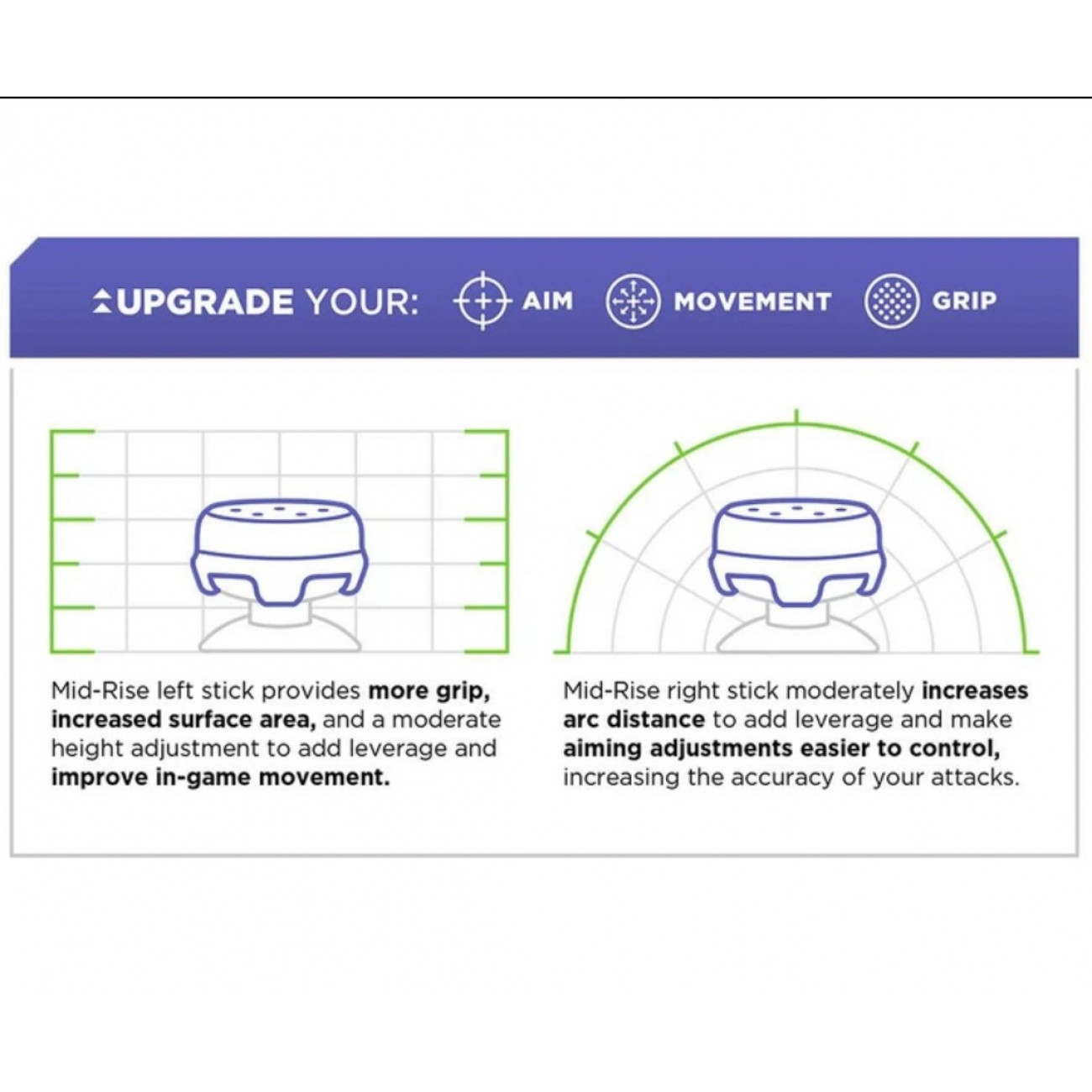 Набір виконаний у форматі Mixed-Rise і включає дві накладки різної висоти, що дозволяє гнучко налаштувати управління під власний стиль гри. High-Rise (+10 мм) збільшує діапазон руху стику, забезпечуючи більш точні мікрорухи та стабільніше прицілювання. Mid-Rise (+6,5 мм) є універсальним варіантом, що поєднує швидку реакцію та контроль, що підходить для більшості жанрів.