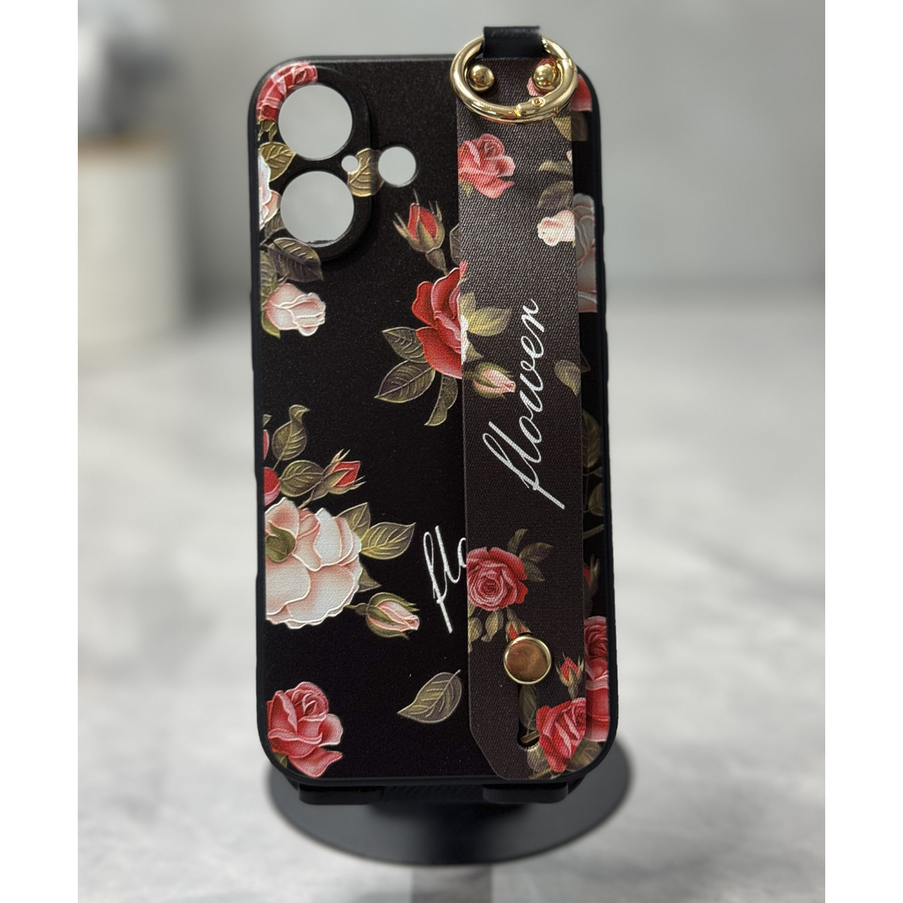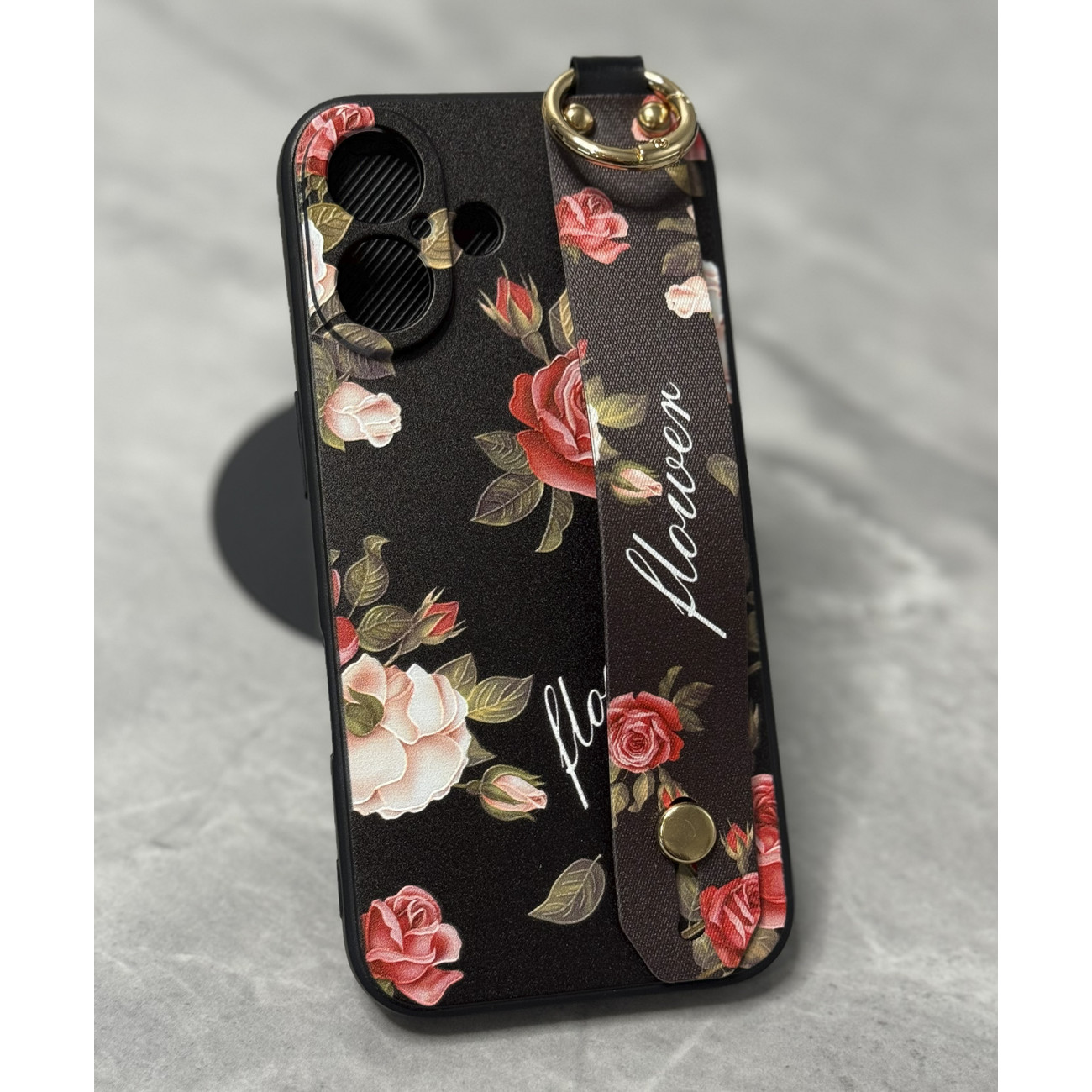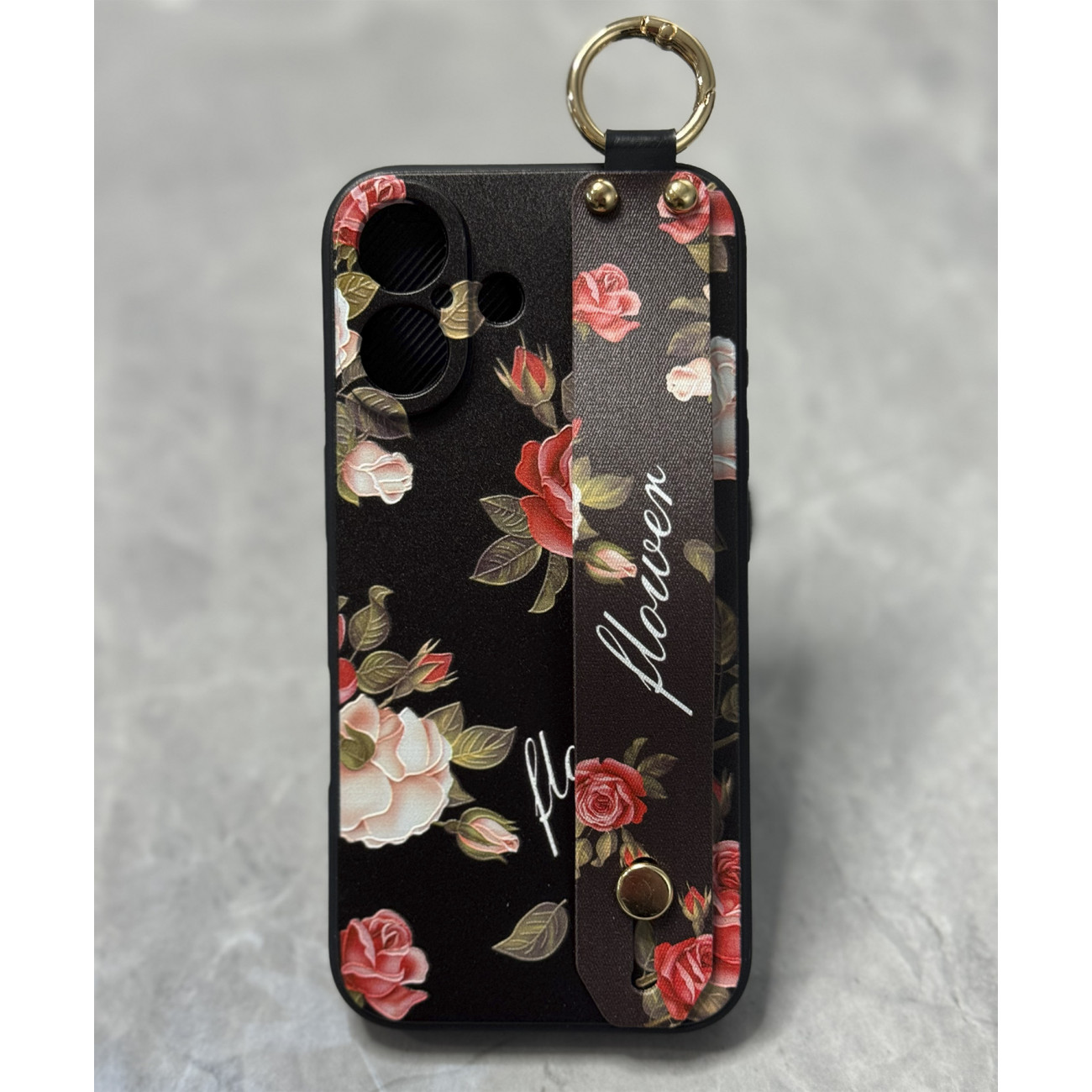 Ідеальний аксесуар для вашого iPhone 16 – силіконовий чохол з ремінцем-підставкою «Троянди»