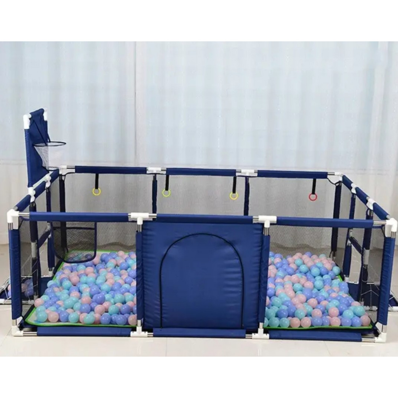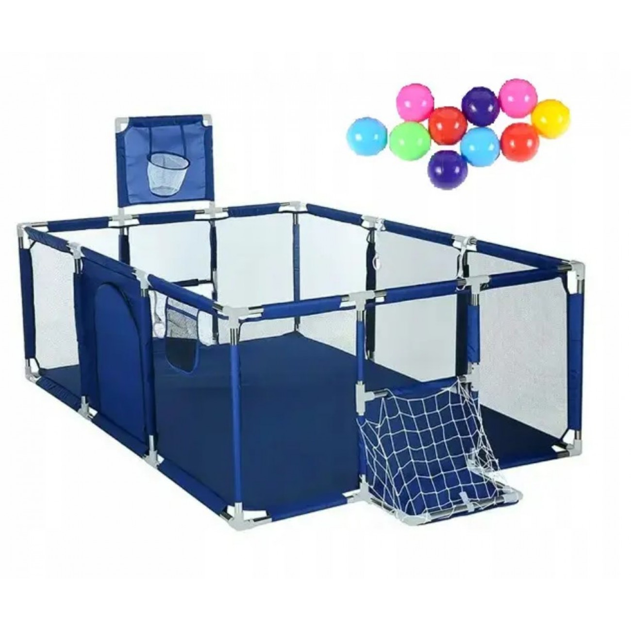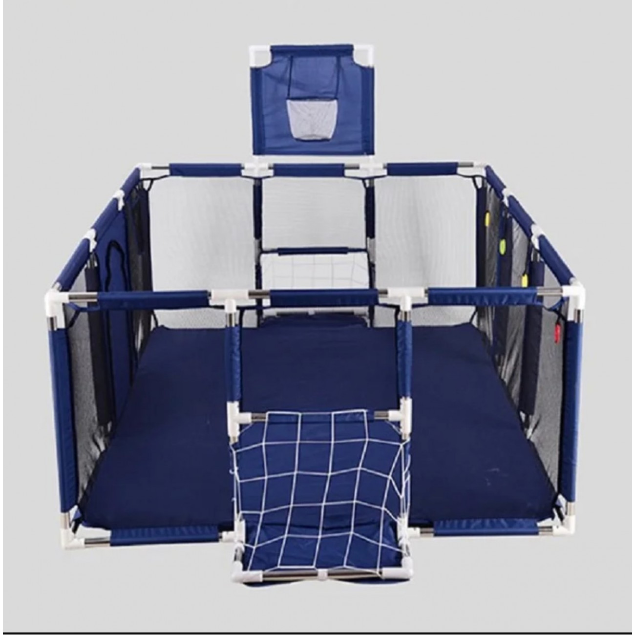 Цей манеж обладнаний баскетбольним кільцем , воротами для маленьких футбольних фанатів, а також набором яскравих кульок, які зроблять гру ще цікавішою. Малята зможуть розвивати свої фізичні навички та координацію, проводячи час у максимально комфортній та безпечній обстановці.