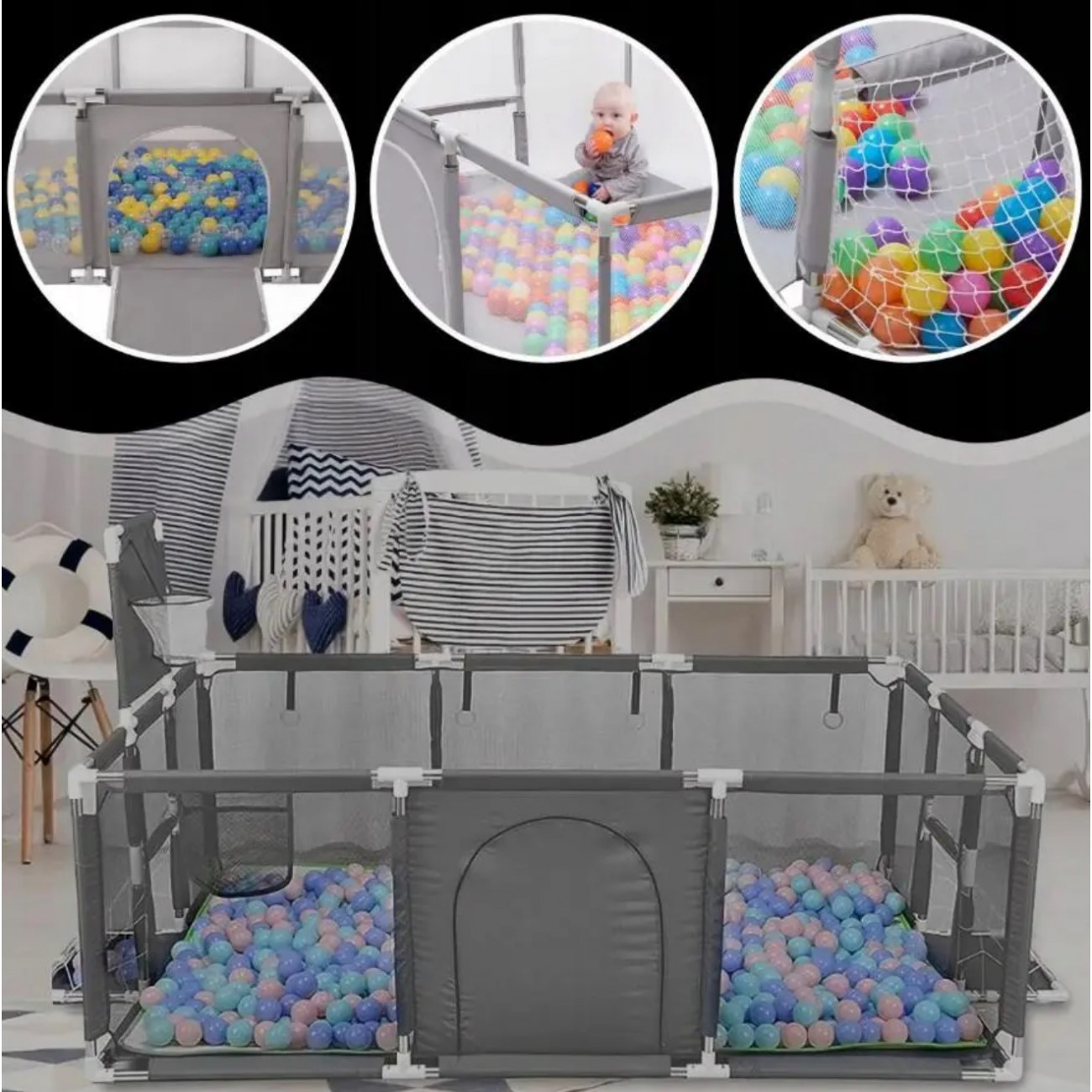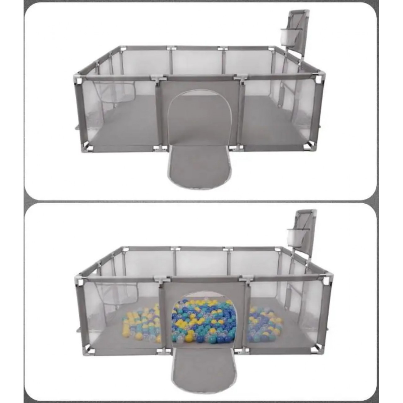 Ігровий манеж не тільки розважає, а й допомагає у розвитку ваших дітей. За допомогою баскетбольного кільця та воріт ваша дитина зможе покращувати свою моторику, а кольорові кульки розвивають сприйняття кольорів та форм. Вчіть дитину радіти успіхам, домагаючись нових ігрових цілей!